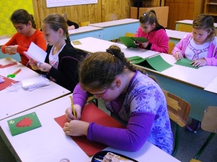 A feladat saját készítésű képeslap készítése, amelyen angol és magyar nyelven fejezzük ki jókívánságainkat. A 4.c és az 5.c osztály tanulói lelkesen készítették a lapokat, szívesen jöttek délutánonként ragasztani, hajtogatni.